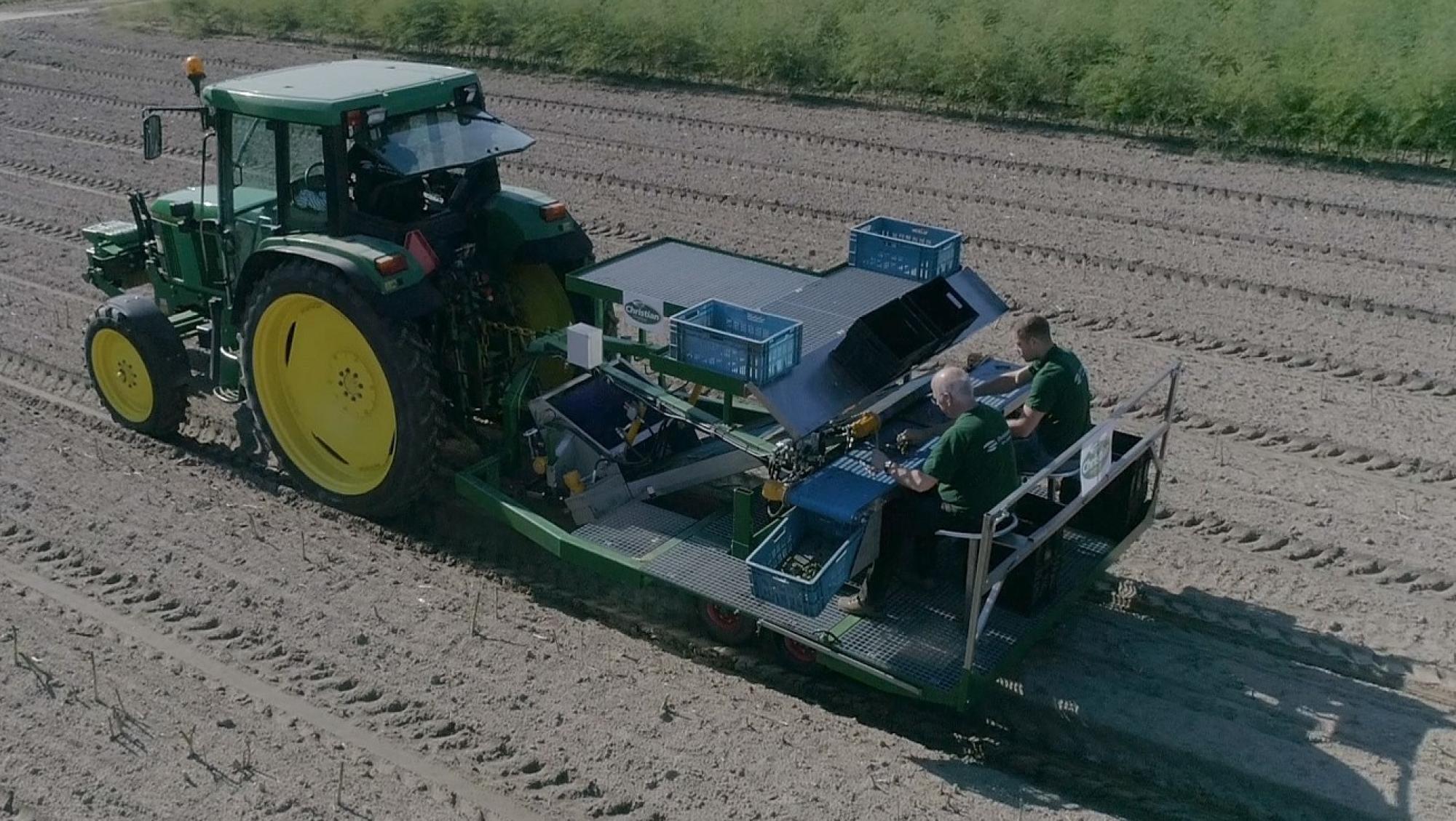 Christian (gepatenteerd) de asperge oogstmachine voor groene (en paarse) asperges.
